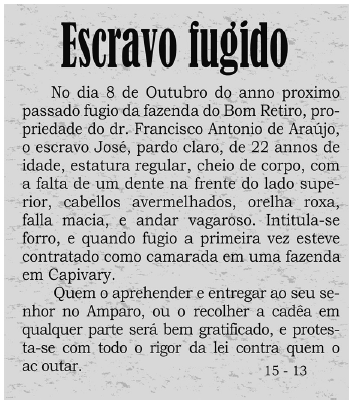 Escravo fugido. Jornal Correio Paulistano, 13 de abril de 1879. Disponível em: