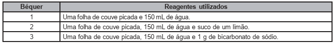 Finalizado o experimento, a cor da couve, nos béqueres 1, 2 e 3, respectivamente, será