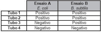 Em uma aula de métodos físicos de controle do crescimento dos microrganismos, foi realizada uma experiência para testar a ação do calor sobre duas espécies bacterianas: Escherichia coli (Ensaio A) e Bacillus subtilis (Ensaio B). Nesses ensaios, foram adicionadas duas gotas de cultura pura de cada uma das espécies em tubos de ensaio contendo meio nutritivo previamente esterilizado. Posteriormente, os tubos foram submetidos aos seguintes tratamentos: