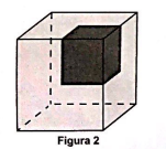 Em um cubo, foram pintados, em três de suas faces, quadrados de cor cinza escura, que ocupam um quarto dessas faces, tendo esses três quadrados um vértice em comum, conforme ilustrado na Figura 2.