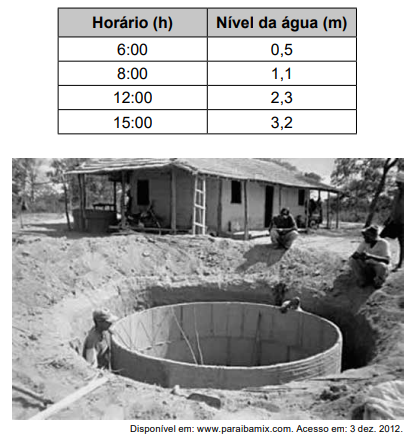 cujo raio da base mede 5 metros, sempre abastecido no primeiro dia de cada mês por caminhões-pipa. Cada morador