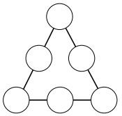 Nos círculos, escrevem-se os números de 1 a 6, sem