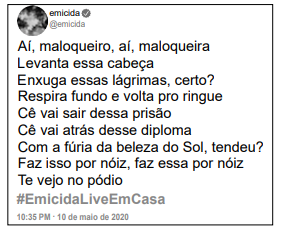 Disponível em: https://twitter.com/emicida. Acesso em: 23 out. 2021.