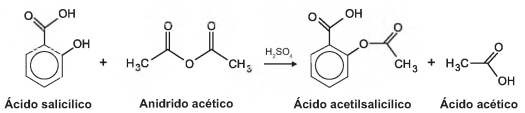 O ácido acetilsalicílico, AAS (massa molar igual a 180 g/mol), é sintetizado a partir da reação do ácido salicílico (massa molar igual a 138 g/mol) com anidrido acético, usando-se ácido sulfúrico como catalisador, conforme a equação química: