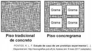 Para se adequar às normas ambientais atuais, as construtoras precisam prever em suas obras a questão do uso de materiais de modo a minimizar os impactos causados no local. Entre esses materiais está o chamado concregrama ou pisograma, que é um tipo de revestimento composto por peças de concreto com áreas vazadas, preenchidas com solo gramado. As figuras apresentam essas duas formas de piso feitos de concreto.