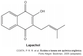 Diversos produtos naturais podem ser obtidos de plantas por processo de extração. O lapachol é da classe das naftoquinonas. Sua estrutura apresenta uma hidroxila enólica (pKa = 6,0) que permite que este composto seja isolado da serragem dos ipês por extração com solução adequada, seguida de filtração simples. Considere que pKa = -log Ka, em que Ka é a constante ácida da reação de ionização do lapachol.