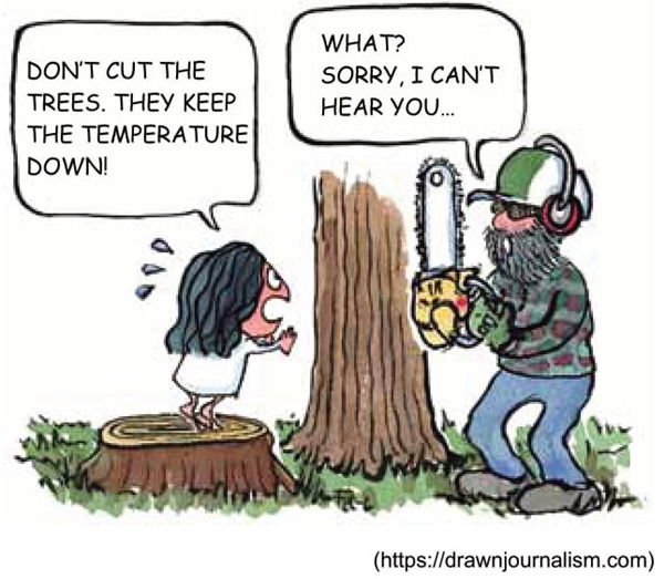Na charge abaixo, o artigo definido é usado nos dois contextos, the trees e the temperature, porque se refere a:
