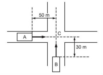 2. (Mackenzie) A figura mostra, em determinado instante, dois carros A e B em movimento retilíneo uniforme. O carro A, com velocidade escalar 20 m/s, colide com o B no cruzamento C. Desprezando as dimensões dos automóveis, a velocidade