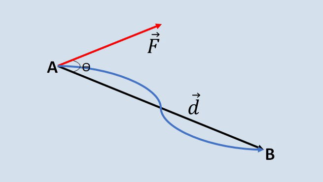 Uma força F, realiza um trabalho sobre um corpo, deslocando-o de um ponto A para um ponto B. O trabalho realizado pela força F ao deslocar o corpo pode ser calculado da seguinte forma: