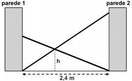 (PM-PR 2014) Duas escadas foram usadas para bloquear um corredor de 2,4 m de largura, conforme indica a figura ao lado. Uma mede 4 m de comprimento e outra 3 m. A altura h, do ponto onde as escadas se tocam, em relação ao chão, é de aproximadamente