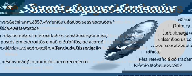 A teoria de Arrhenius foi criada pelo químico sueco Svante August Arrhenius. Seus experimentos constataram quais tipos de substâncias seriam capazes de formar íons e como isso estava relacionado à condutividade elétrica.