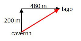 (UFAL-AL) A localização de um lago, em relação a uma caverna pré-histórica, exigia que se caminhasse 200 m numa certa direção e, a seguir, 480 m numa direção perpendicular à primeira. A distância em linha reta, da caverna ao lago era, em metros,
